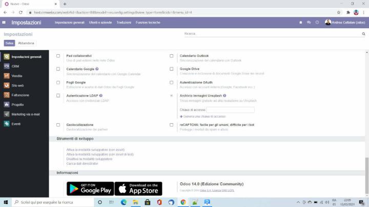 Una volta attivata la modalità da sviluppatore si potranno ritoccare le viste di sistema, le traduzioni, le impostazioni generali della propria azienda.